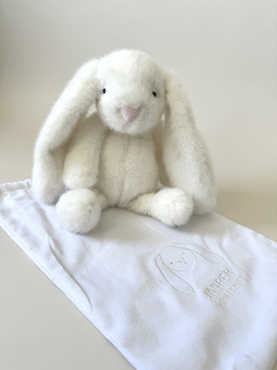 Jasper is a classic lop bunny shape with floppy neck and long lush ears, perfect for personalisation.