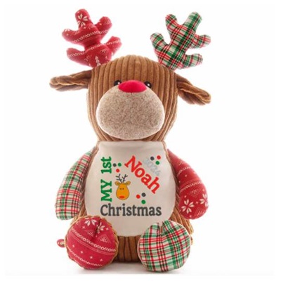 Our Personalised reindeer teddy is the perfect Xmas gift.   Add your own personalised details to make a unique and special personalised Christmas present.  Our cute reindeer is  something to cuddle and a memorable keepsake too.  Add your special personalised message to the back to top off the perfect Christmas gift for kids and adults.