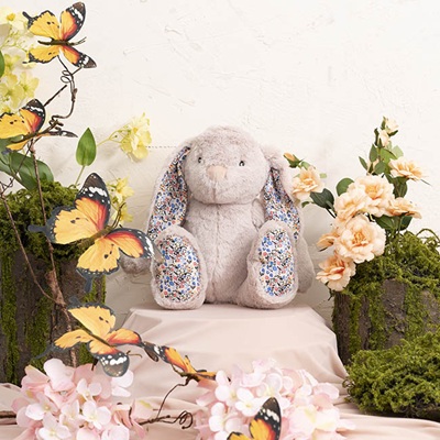Crafted from premium plush fabric, Lucy Bunny features luxuriously soft fur, making it the perfect cuddly friend. Lucy bunny has gorgeous contrasting fabric patterns on ears and feet to coordinate with esch style
