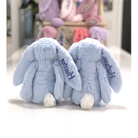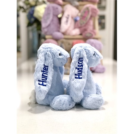 Jellycat bunnys can be embroidered with a maximum of 11 letters, and the colour of your choice.